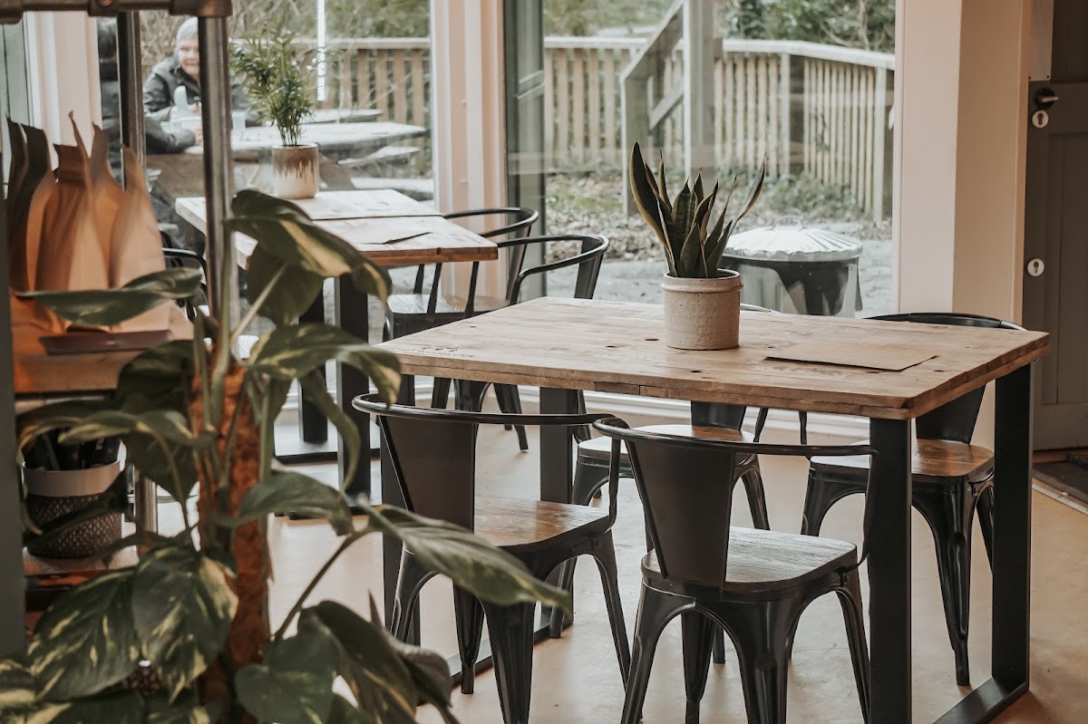 Nice little café, in and outdoor seating. Right in the middle of nature. Great coffee and lovely cakes, always goes down well. Friendly and helpful staff. Toilets available too around the back of the café.