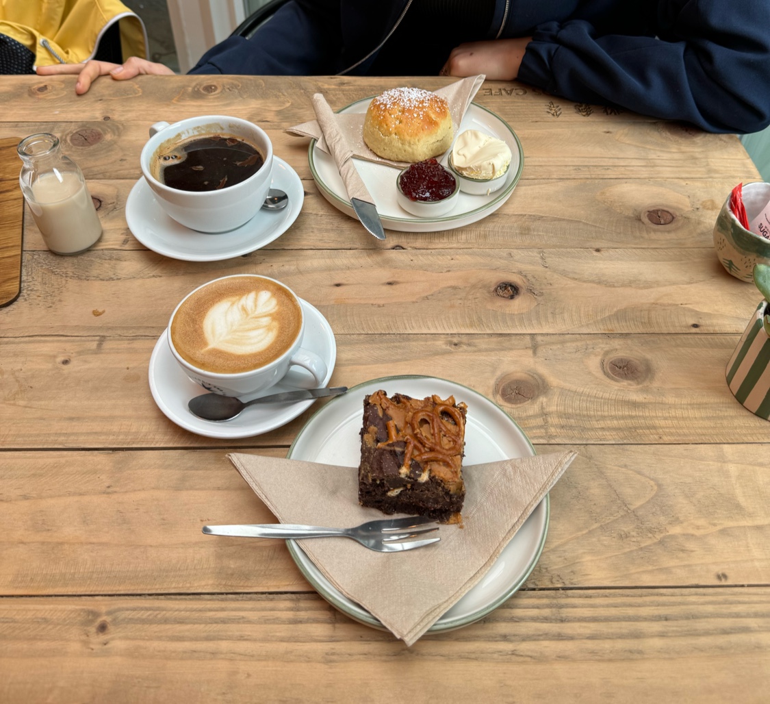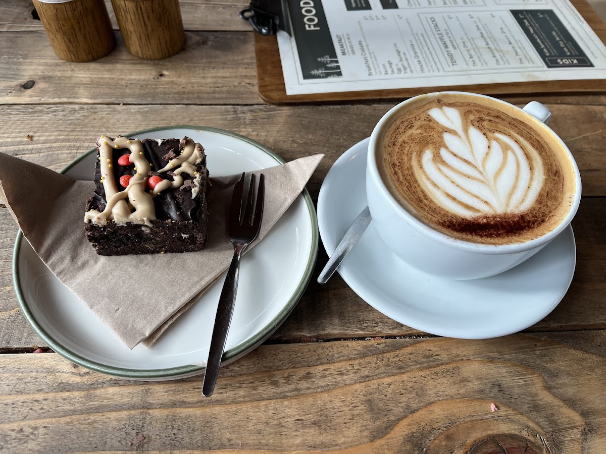 Was surprised to get a table as it has been busy on the occasions we've been here. My partner and the dog got settled at a table outside and I went and ordered. An excellent selection of sweet treats to choose from. After ordering 2 coffees and 2 sweet treats, and obviously a pupcup for our pup. I took the sweet treats out and the coffee followed shortly after. I had the salted caramel brownie and my partner had the carrot and orange brownie. Both so lovely. And our pup especially enjoyed his first pupcup. Definitely worth the visit after a lovely walk around the woods.