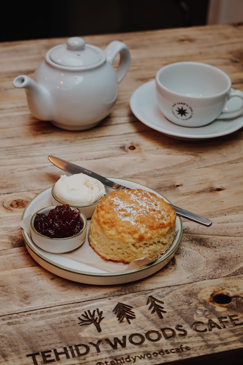 Staying nearby on holiday we came to Tehidy Woods. It is such a lovely place to walk around and the dogs loved it as much as us. We came to the Cafe at lunchtime and the food was absolutely delicious. It was well priced and the portion size was very good. We had ciabatta toasted with fillings. It also came with a side salad and dressing. We shared a cream tea as the ciabattas were so filling. The cream tea was also of a good portion size with a soft scone and plenty of cream and jam. The staff were extremely polite and friendly. It was really enjoyable sitting in the woods at the Cafe having our lunch. The dogs were happy chilling by the benches as we ate. It's a shame we live so far away as otherwise we would be regulars at the woods and the Cafe.